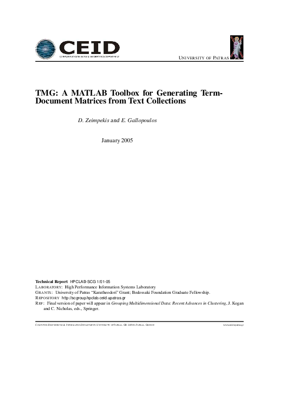 Pdf Tmg A Matlab Toolbox For Generating Term Document Matrices From Text Collections Efstratios Gallopoulos Academia Edu